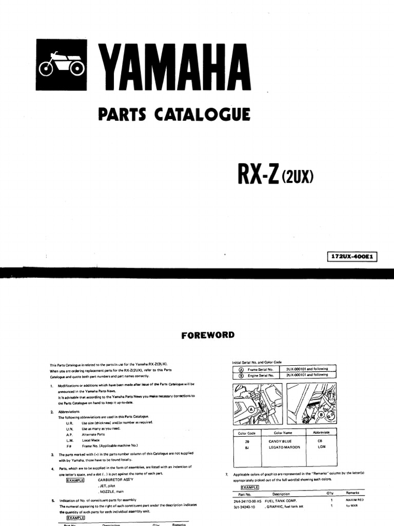 19871006 Yamaha Rxz 5speed Owner Manual